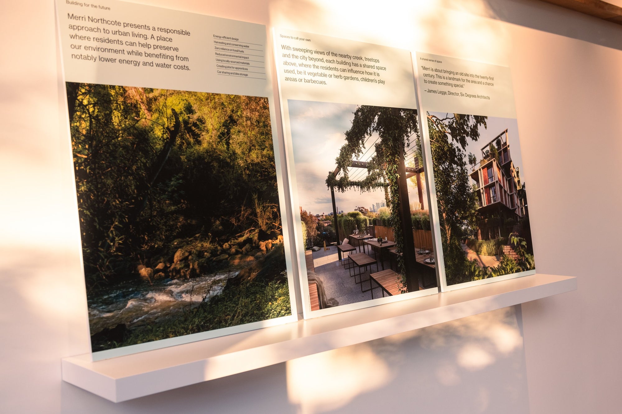 The result is a sales office that feels grounded and authentic, offering a spatial expression of Merri Creek’s values and MAB’s commitment to responsible, design-led development.